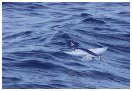 Flying fish live in all of the oceans, particularly in tropical and warm subtropical waters. Their most striking feature is their pectoral fins, which are unusually large, and enable the fish to hide and escape from predators by leaping out of the water, taking short gliding flights through air just above the water's surface. Their glides are typically around 50 metres (160 ft).To glide upward out of the water, a flying fish moves its tail up to 70 times per second. It then spreads its pectoral fins and tilts them slightly upward to provide lift. At the end of a glide, it folds its pectoral fins to reenter the sea, or drops its tail into the water to push against the water to lift itself for another glide, possibly changing direction...